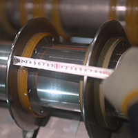 モノづくりに欠かすことのできない、コイルを切断および加工する専用機械の設計・製造を行っています。コイルとは、鉄やアルミ、ステンレスといった金属の薄い板をトイレットペーパー状に巻き取ったものです。コイルをモノづくりの材料とするには、最終用途にあわせて必要な長さや大きさに切断加工する必要があり、それらの条件にあった最適な加工を実現するためにオーダーメイドによる機械製造を行っています。